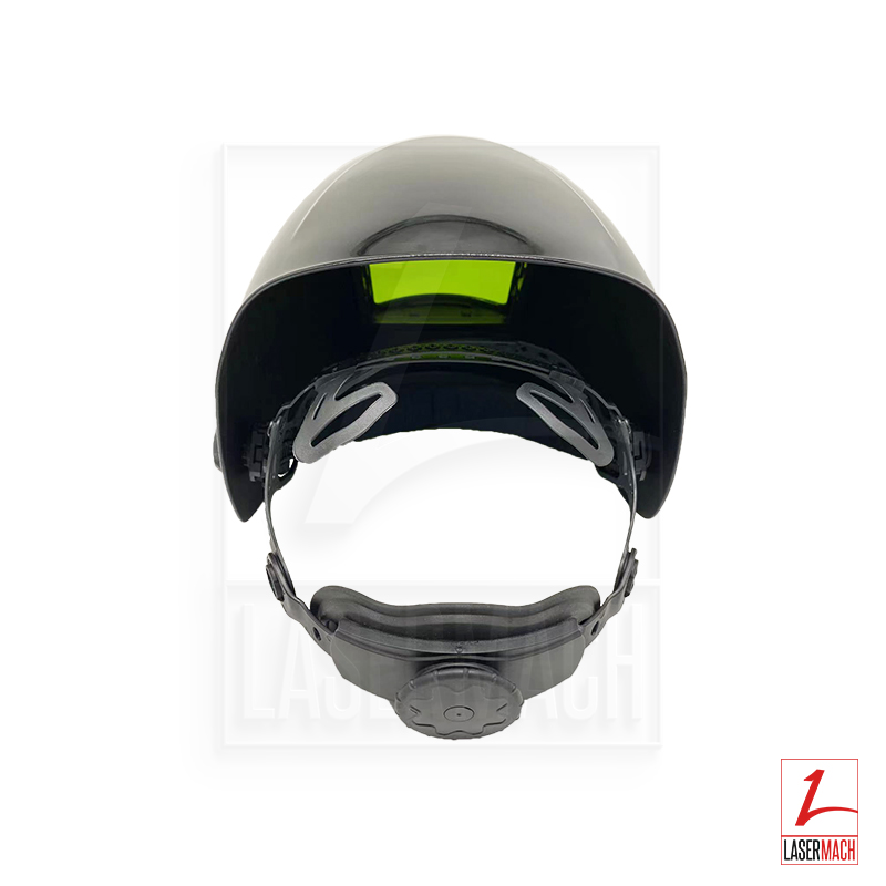 The laser protection window type of this protection helmet is made of a dark green absorbing plastic, on a particularly laser-resistant PMMA basis.